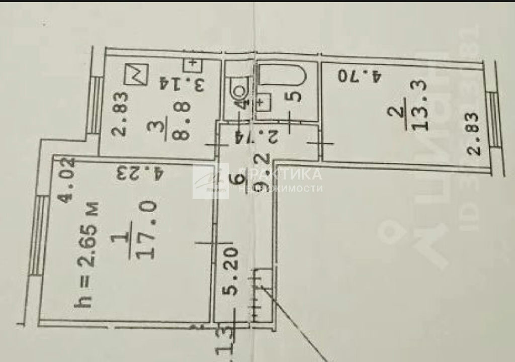Общая: 52,3 м2