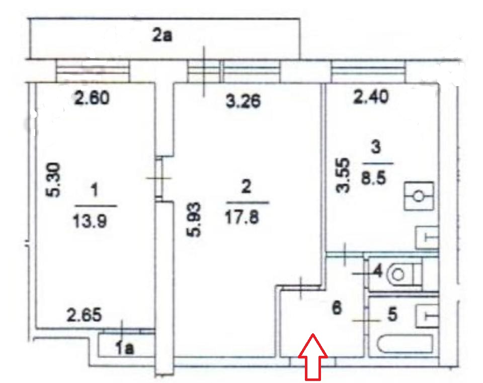 Общая площадь 47,7 кв.м (без учета лоджии), комнаты смежные 17,8 кв.м. и 13,9 кв.м., кухня – 8,5 кв.м., санузел раздельный, кладовка, просторная лоджия на 2 комнаты (не остеклена).