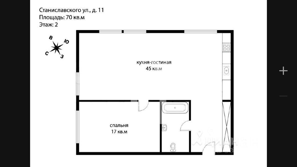 Общая: 70 м2