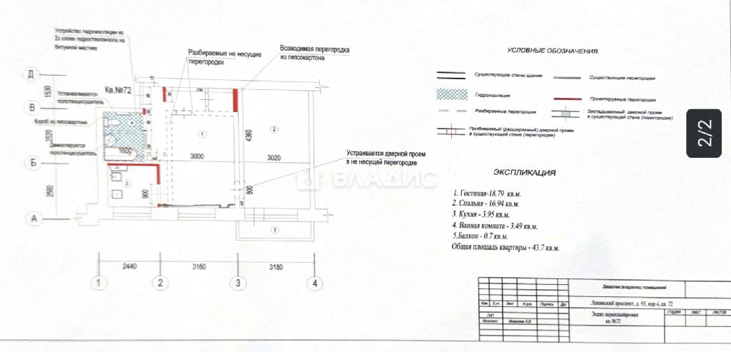 Общая: 43,7 м2