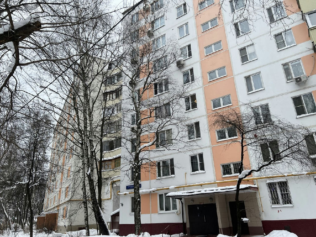 девятиэтажного панельного дома. Из окон