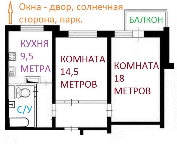 Комнаты: 18-14.5 м2