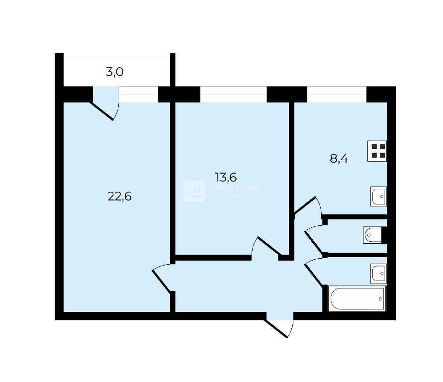 Общая: 56,8 м2