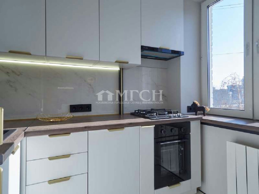 Кухня полностью оборудована необходимой техникой: холодильник, раковина (плюс фильтр для питьевой воды), посудомоечная машина, варочная панель, духовой шкаф, вытяжка.