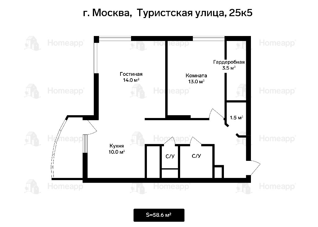 Комнаты: 14-13 м2