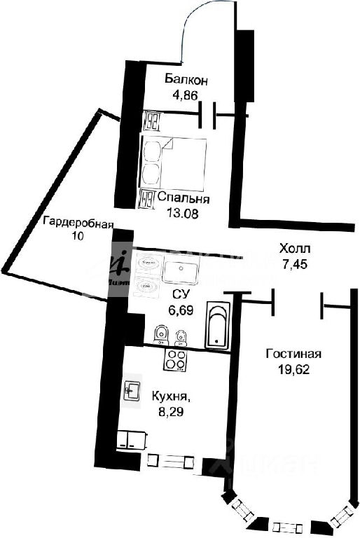 Жилая: 32,7 м2