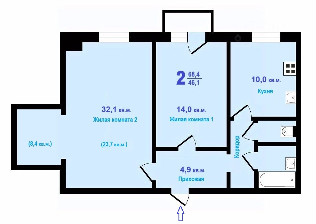 Комнаты: 32,1-14 м2
