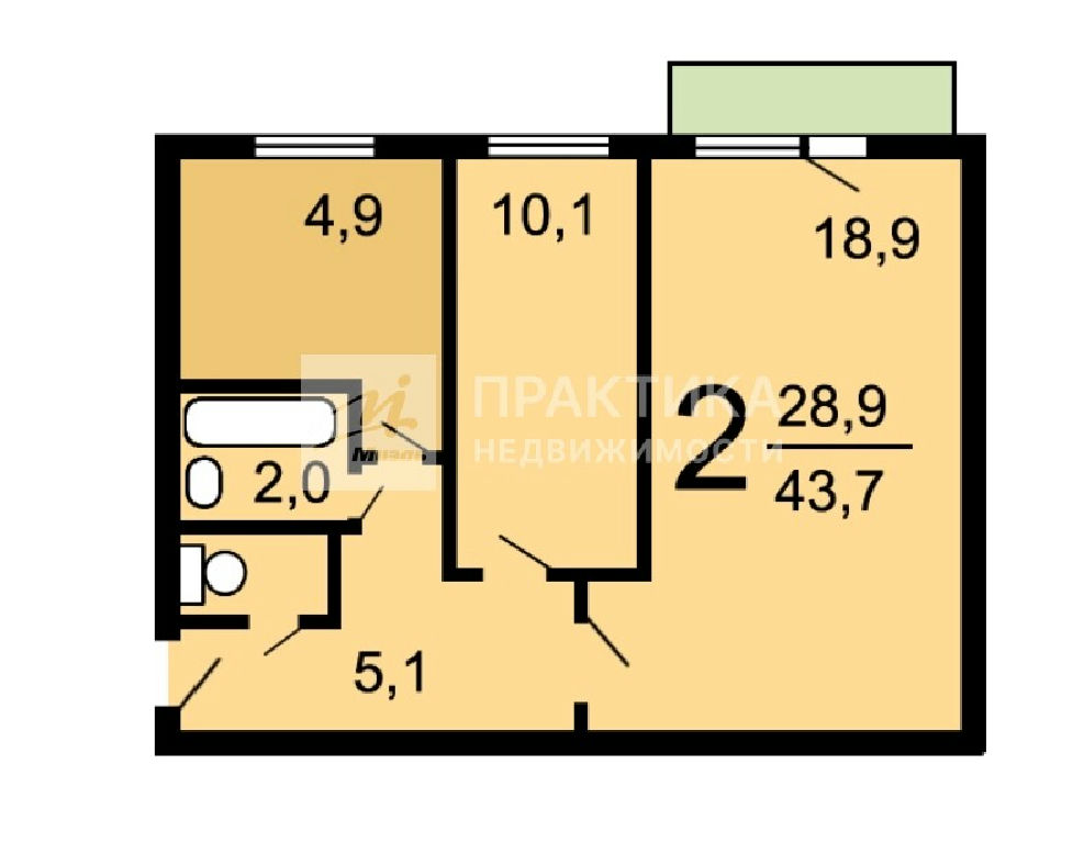 Общая: 43,7 м2