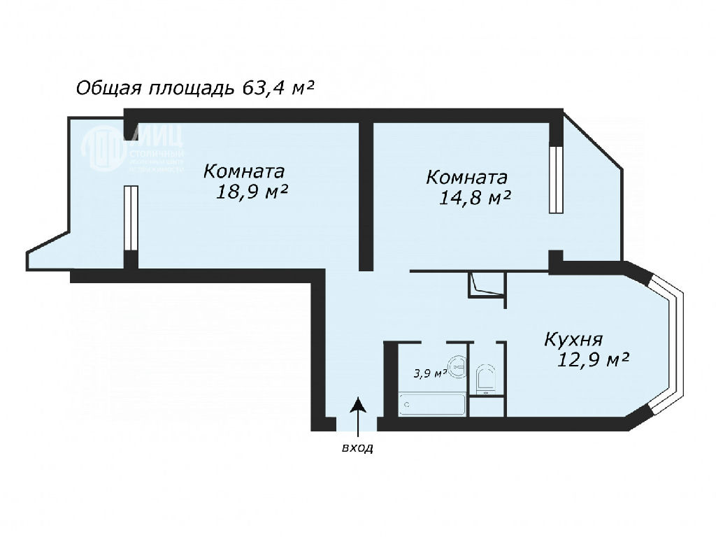 Общая: 64 м2