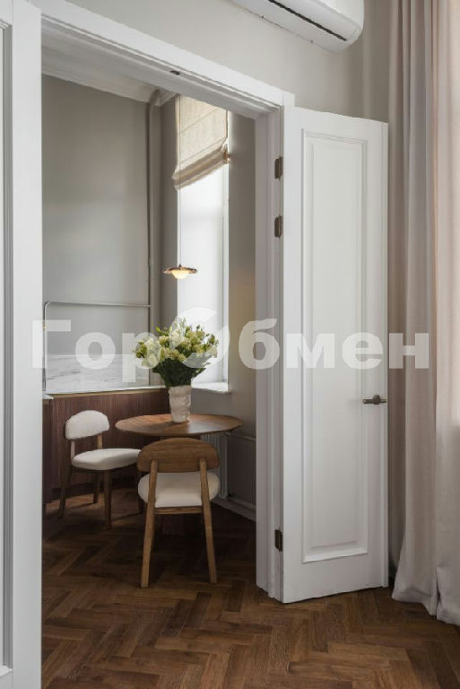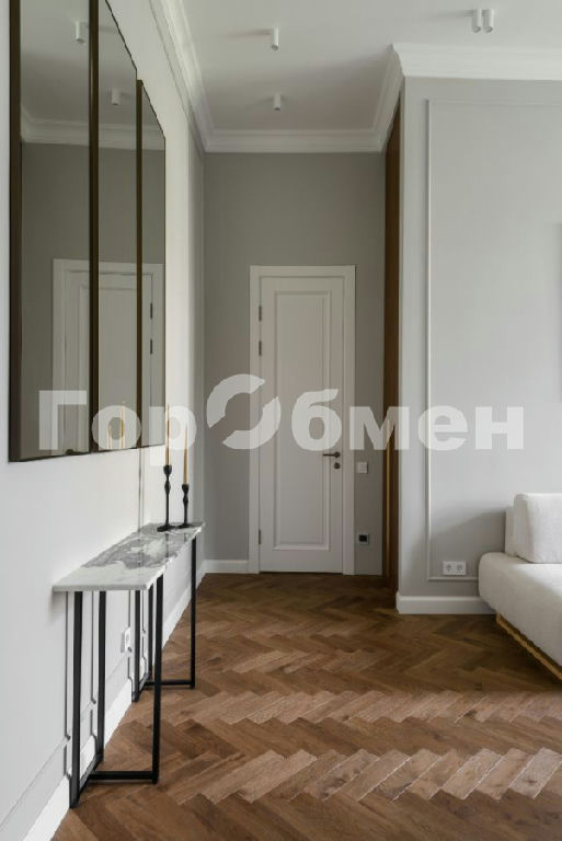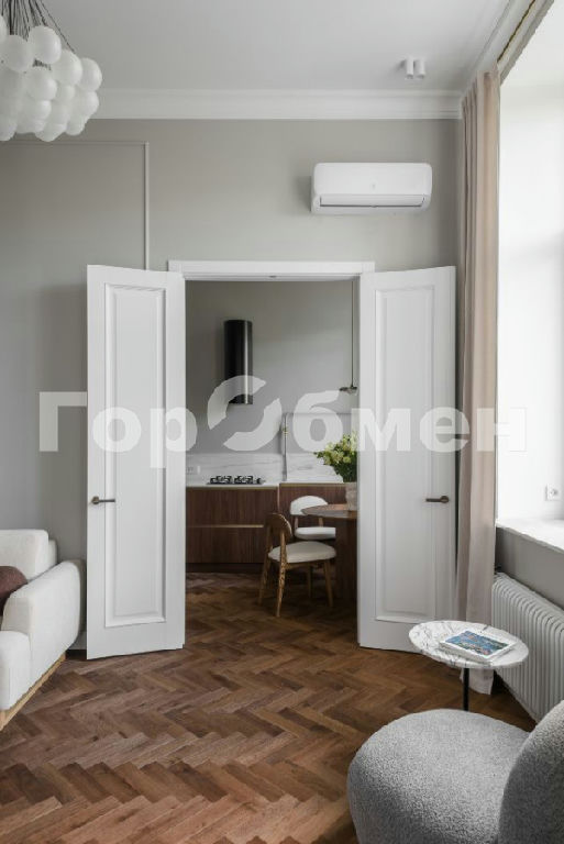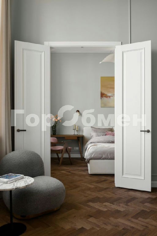 На полу паркетная доска Coswick. Распашные двери Эстет высотой 2,5 метра.