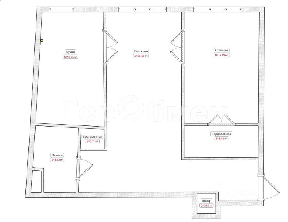 Комнаты: 25.7 12.2 м2