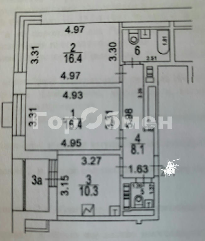Комнаты: 16.4 16.6 м2