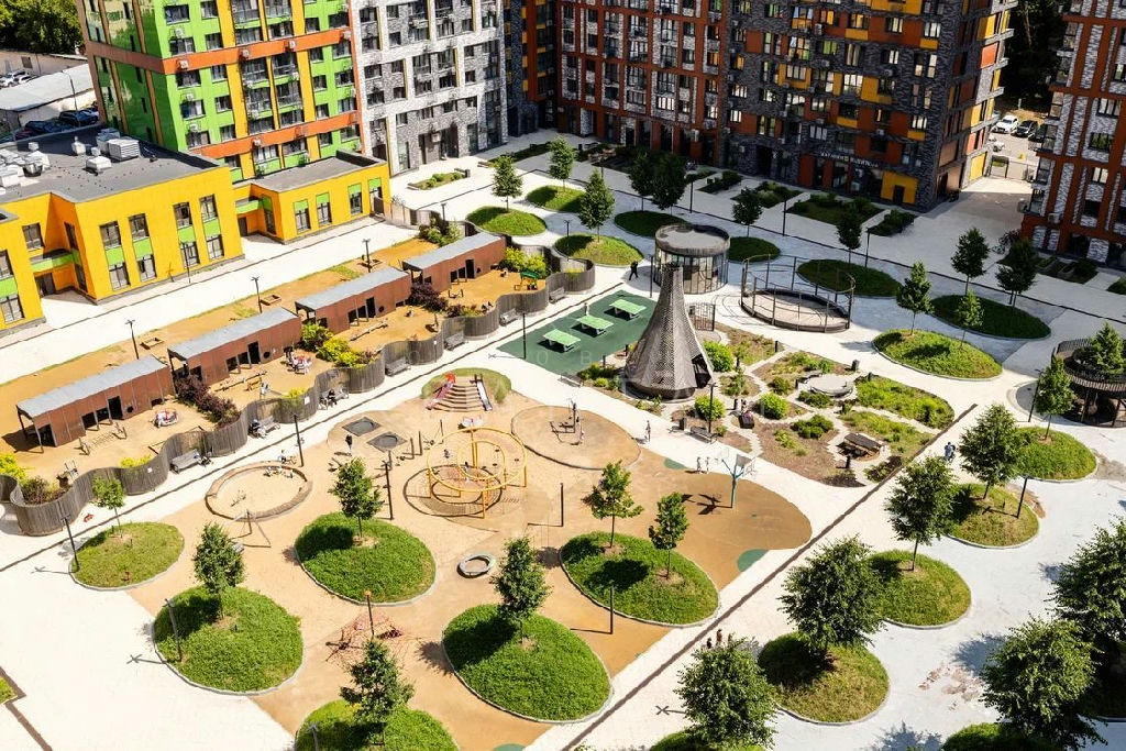 Современный безопасный, зеленый закрытый охраняемый двор без машин (для жителей подземный паркинг), детские площадки, спортивные площадки. Круглосуточная охрана и видеонаблюдение.