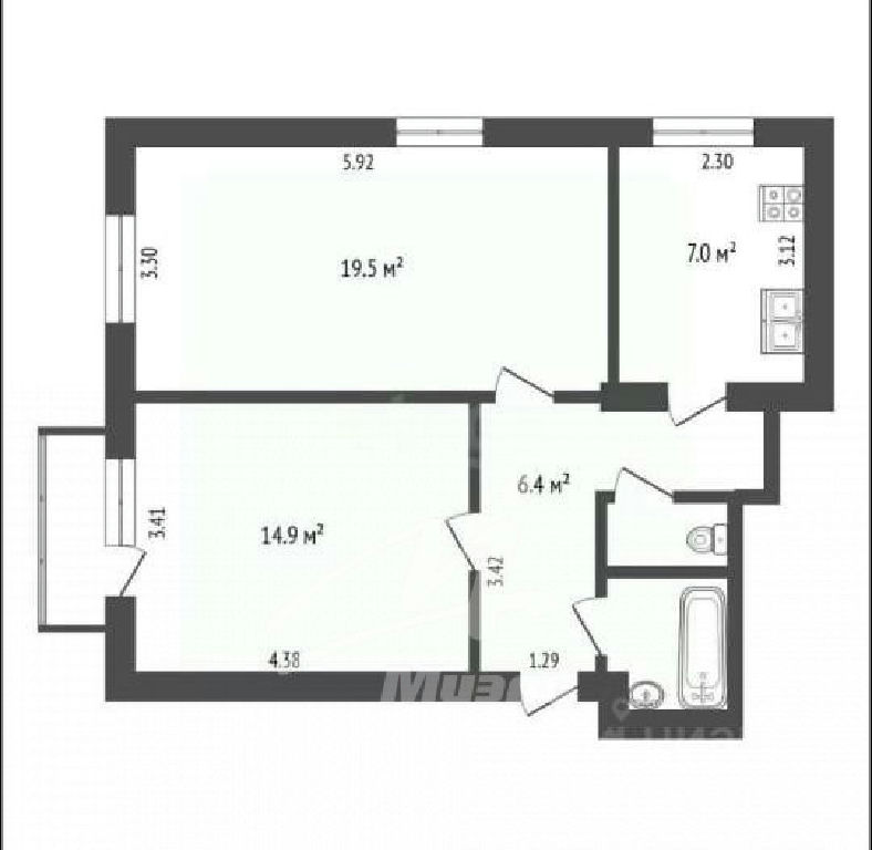 Комнаты: 19.5 14.9 м2
