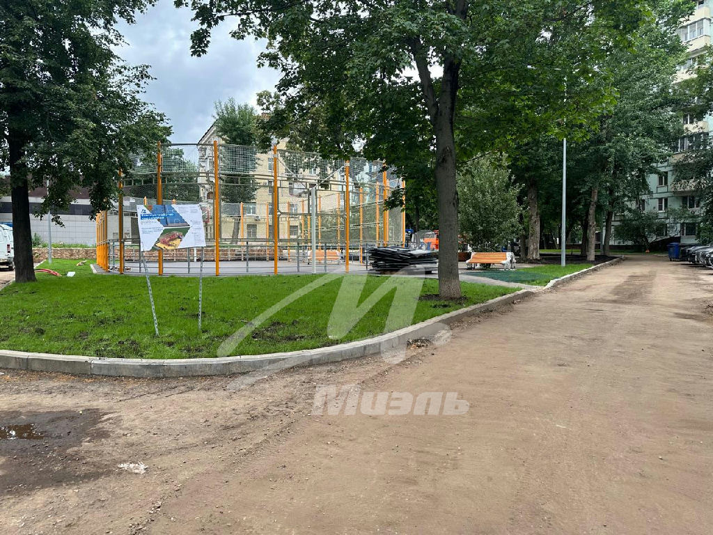 Тихий, ухоженный двор с детскими и спортивными площадками, вокруг дома идет благоустройство территории.