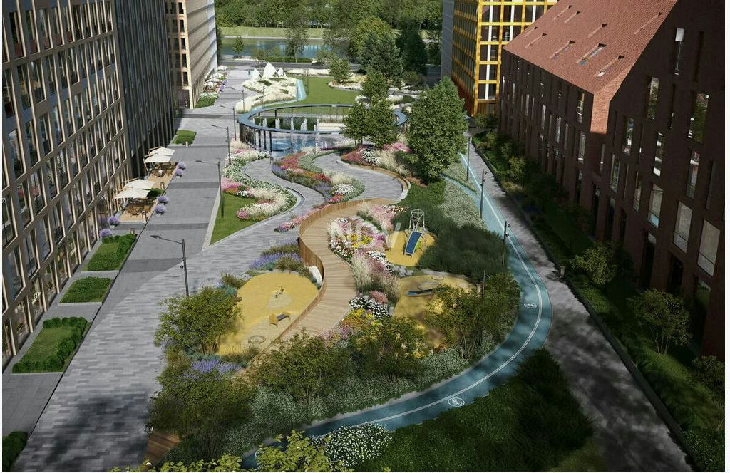 На территории ЖК есть собственная набережная и бульвар для прогулок. прекрасная транспортная доступность: 100м до метро, собственный причал речного трамвая на территории ЖК, выезд на Звенигородское шоссе.