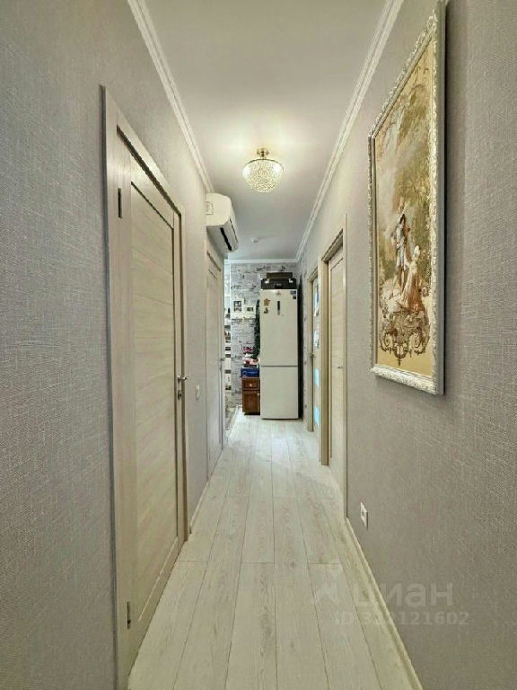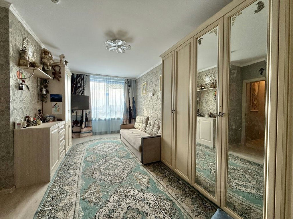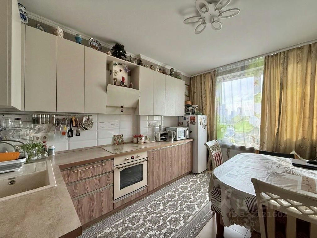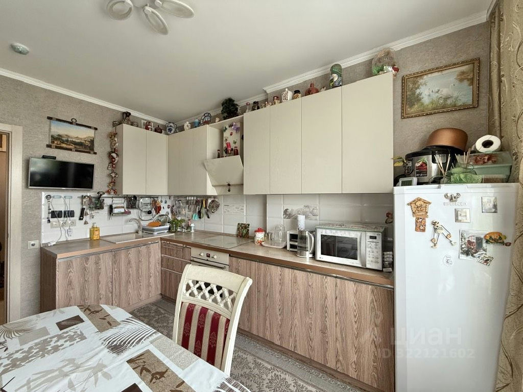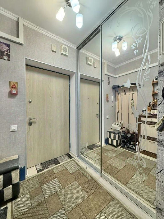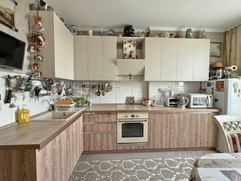 Квартира укомплектована кухонным гарнитуром с встроенной техникой, вместительными шкафами-купе, установлен кондиционер.