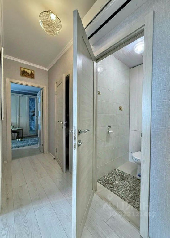 В квартире выполнен ремонт от застройщика, в светлых тонах.