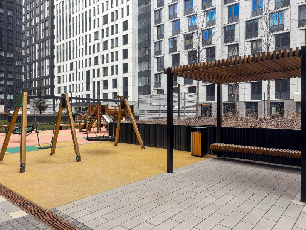 Во дворе дома закрытая территория, на которой расположены детская и спортивная площадки. Это идеальное место для прогулок и отдыха на свежем воздухе.