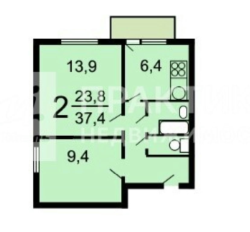 Общая: 38,2 м2