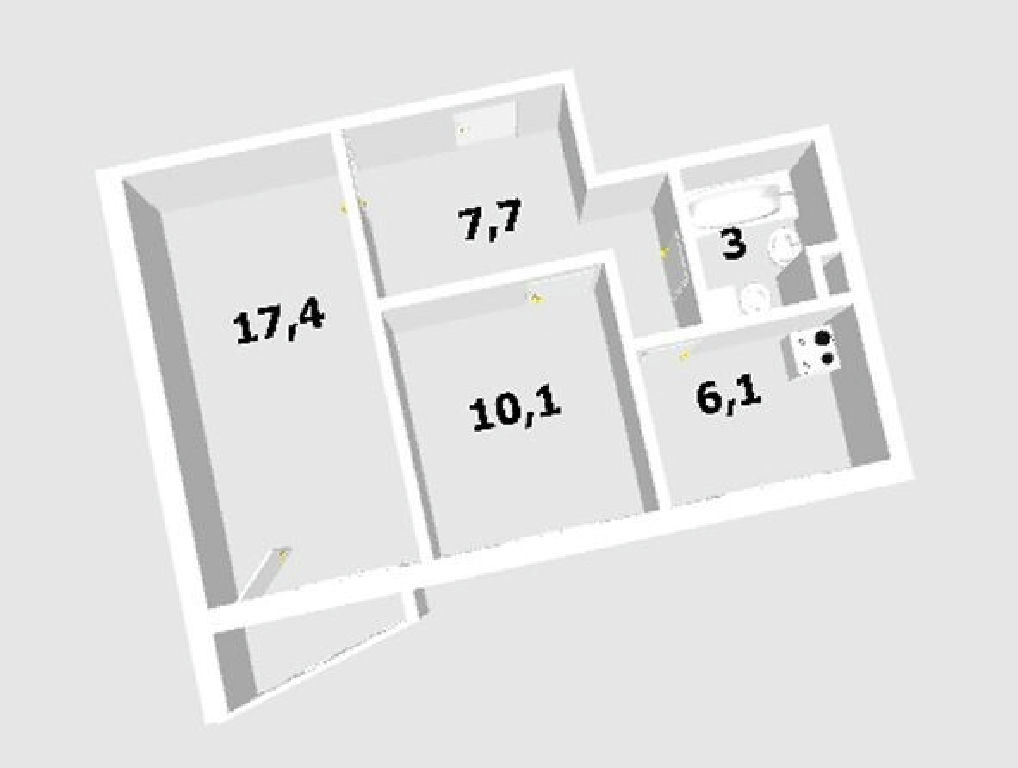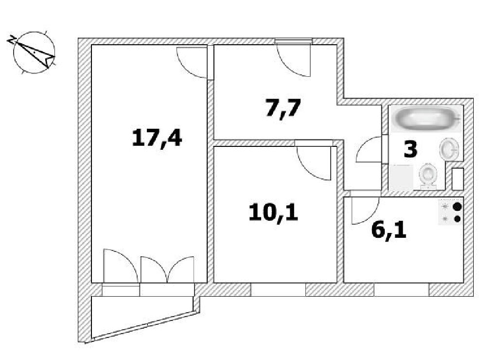 Общая: 44,3 м2