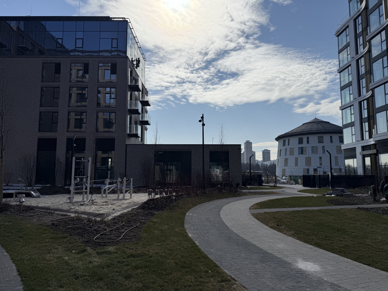 Под панорамными окнами квартир находится собственный экопарк с продуманной сетью прогулочных дорожек и современными детскими и спортивными площадками. За парком расположена набережная с собственным пляжем и зонами для отдыха.