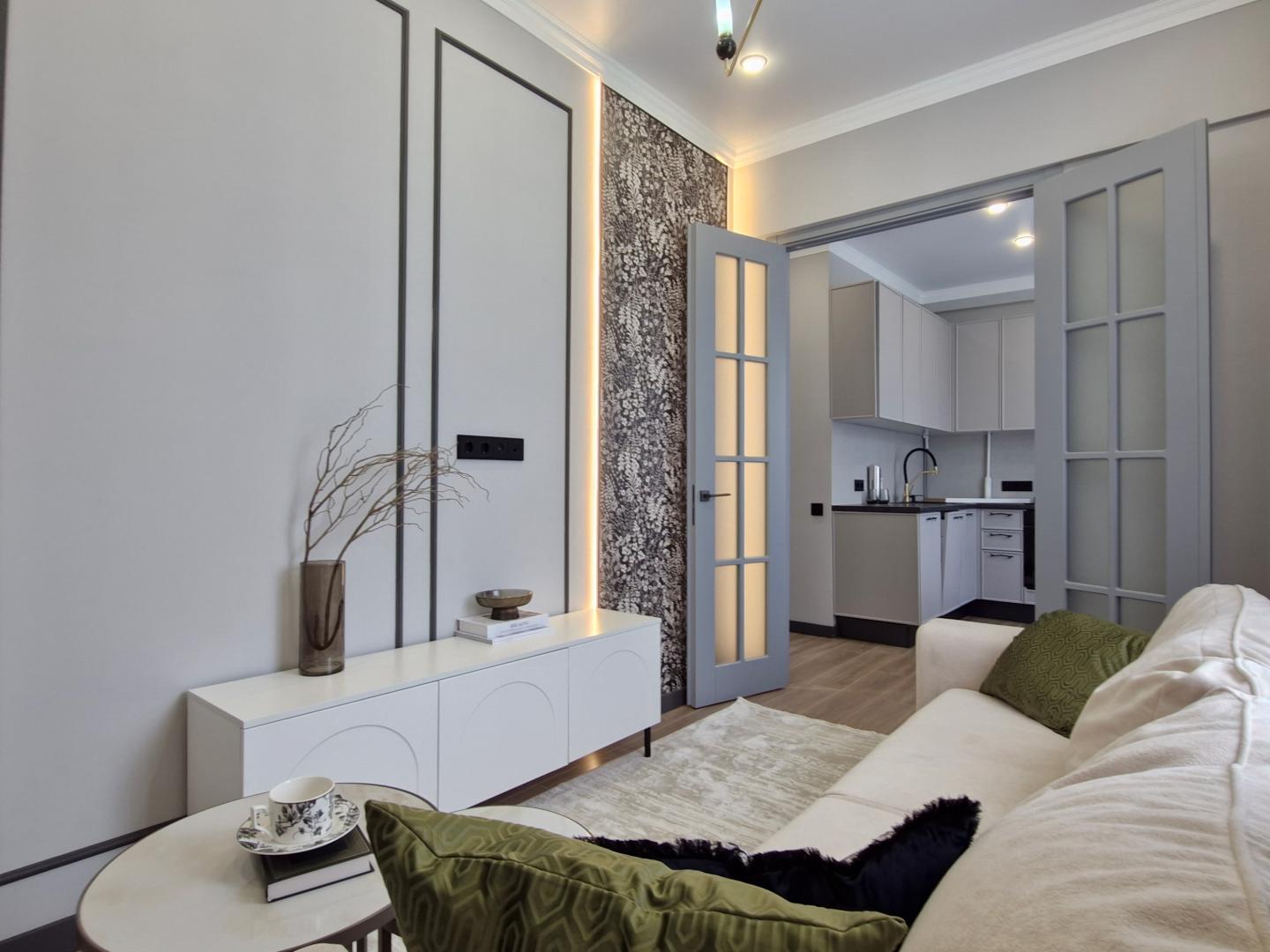Представляем вам дизайн интерьера, в котором гармонично сочетаются современные тенденции, практичность и эстетика. Пространство зонировано логично и удобно, каждый уголок продуман до мелочей. Результат: стильное, уютное и функциональное пространство, в котором гармонично сочетаются комфорт, практичность и эстетика — идеально подходящее как для жизни, так и для отдыха.