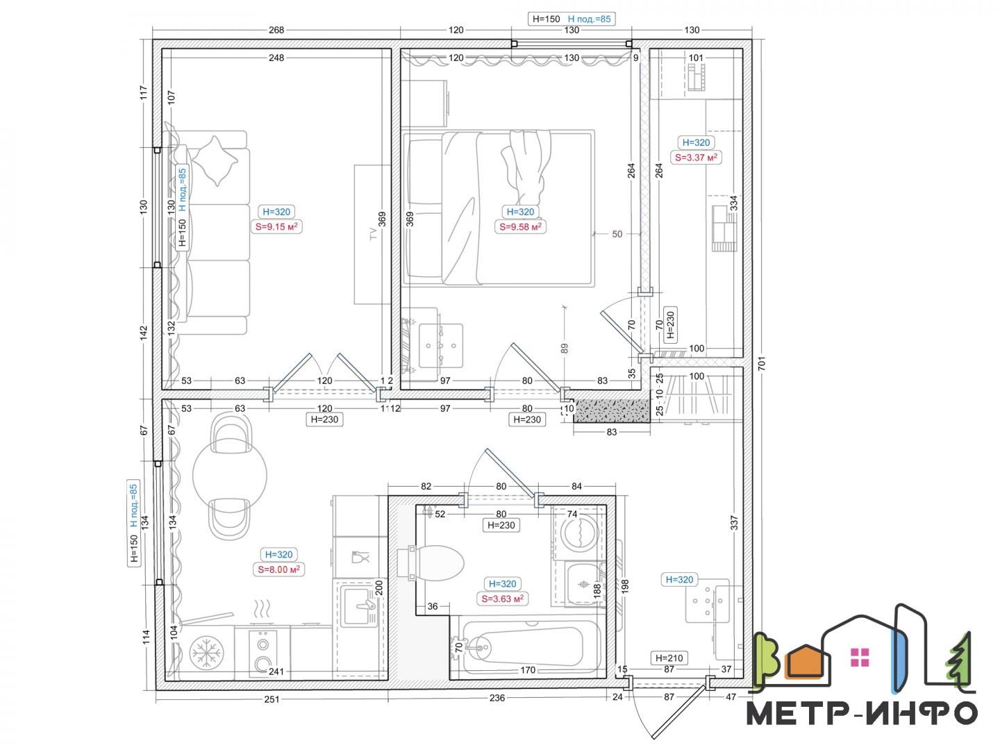 Кухня: 8 м2