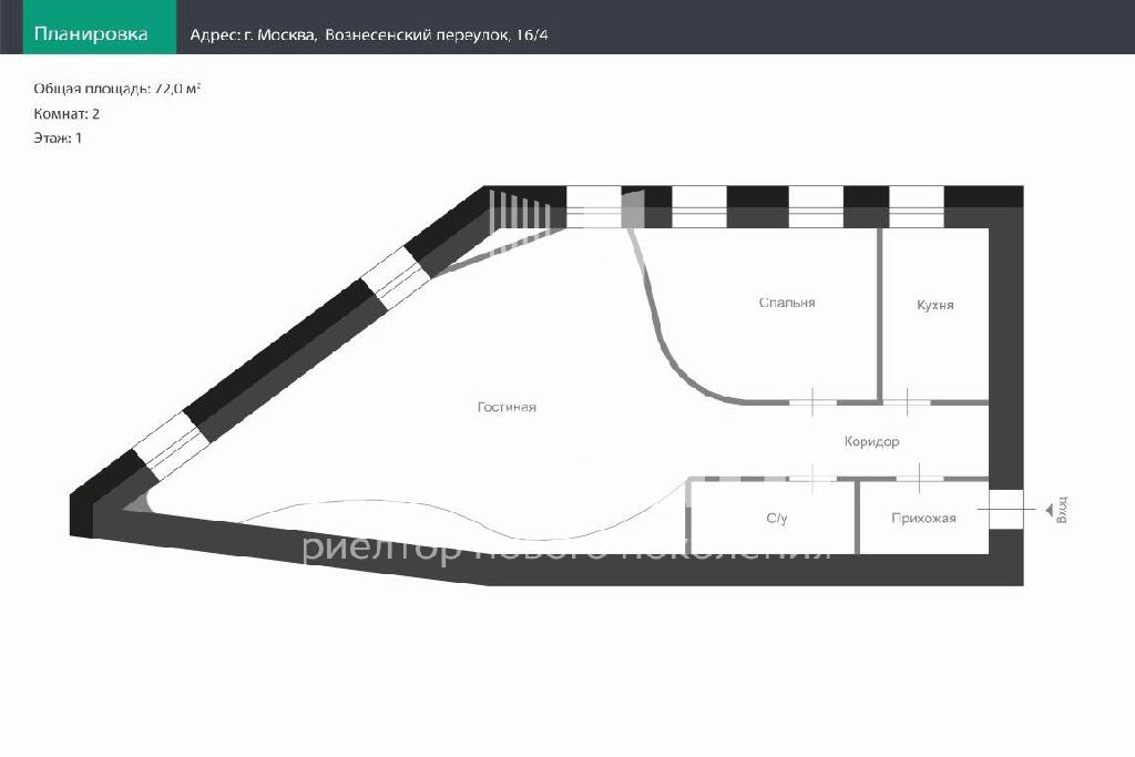 ID 14775 Предлагается 2-комнатная квартира в историческом доме на Вознесенском переулке.