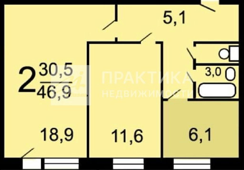 Общая: 46,9 м2