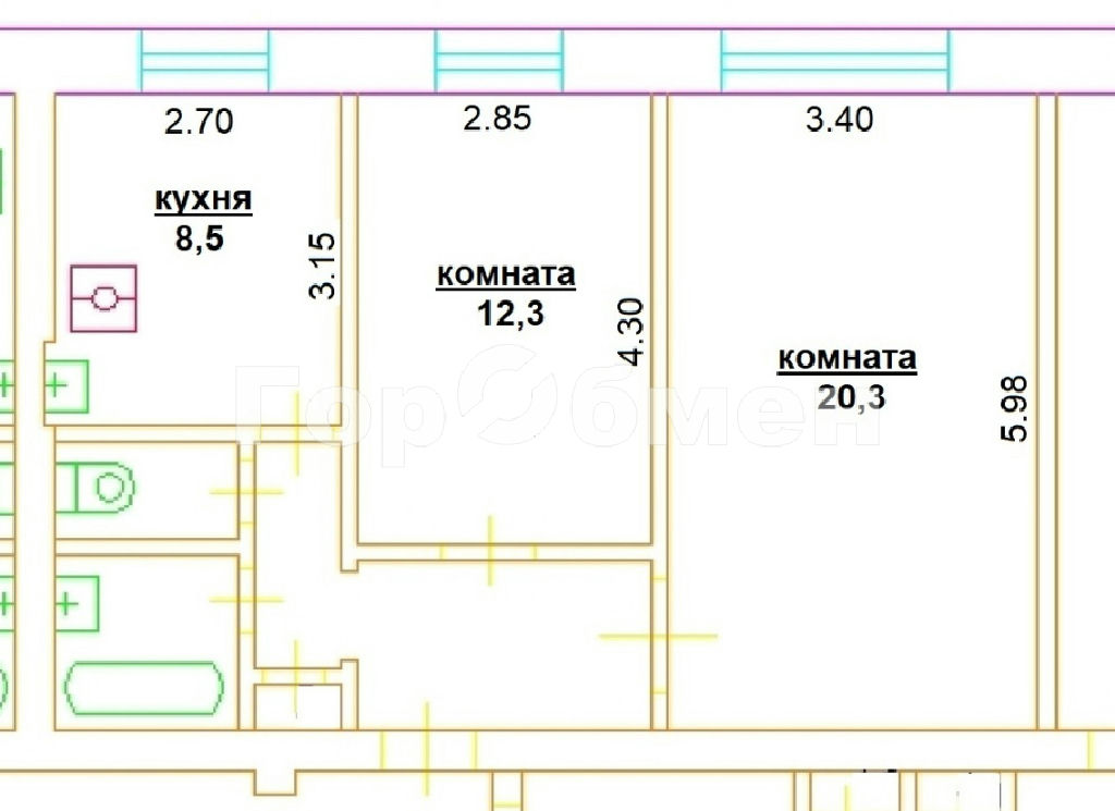 Комнаты: 12.3 20.3 м2