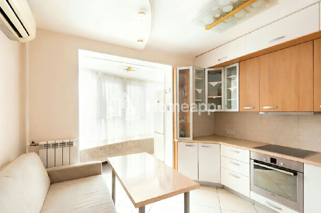- Просторная кухня-гостиная: кухня объединена с оборудованной лоджией, создавая большое светлое пространство для совместного отдыха..