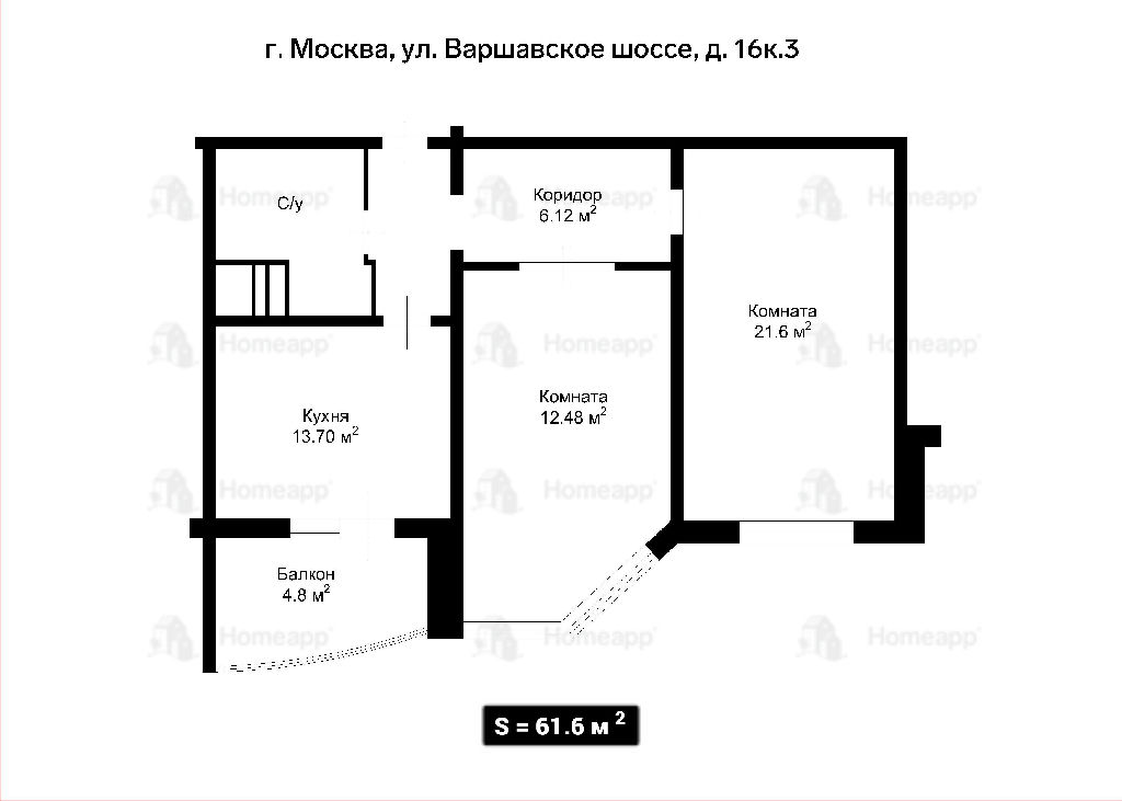 Комнаты: 21.6-12.5 м2