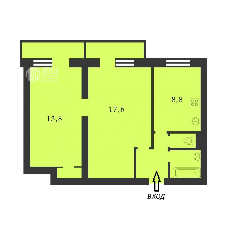 Комнаты: 13.8 17.6 м2