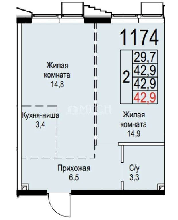 Жилая: 29,7 м2