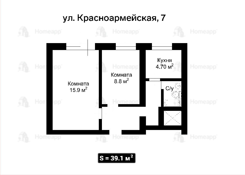 Общая: 39,1 м2