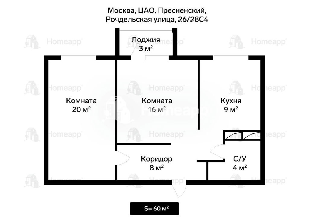 Общая площадь квартиры 58 м2 (с учётом балкона площадь 60 м2). С функциональной продуманной планировкой. Прихожая со встроенными шкафами. Санузел совмещённый с нишей для стиральной машины. Кухня площадью 9 м2. Две изолированные комнаты: одна 16 м2 с выходом на остеклённый балкон с дверью "французское окно". Вторая комната 20 м2.