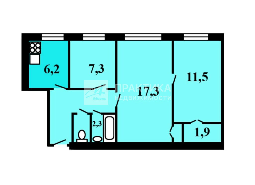 Общая: 52,3 м2