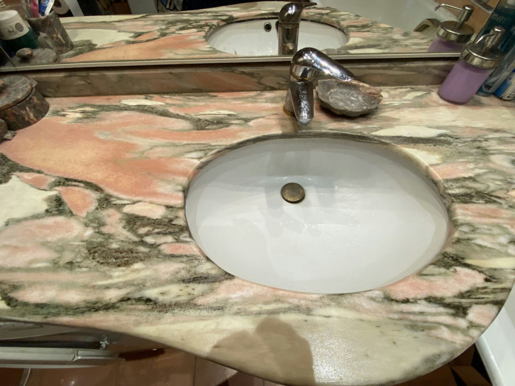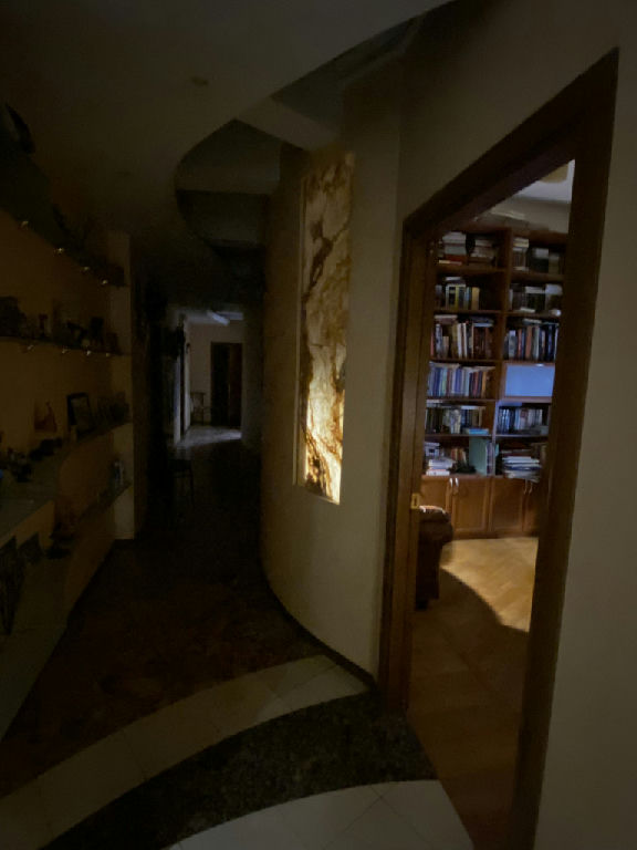 Везде отделка природным камнем: мрамор, лабрадорит, оникс, мозаика. Индивидуальный проект известного архитектора. Ремонт не новый. Перепланировка узаконена. Во время ремонта перекрытия были заменены на железобетонные.