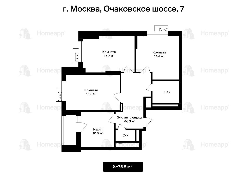 Комнаты: 16.2-15.7-14.4 м2