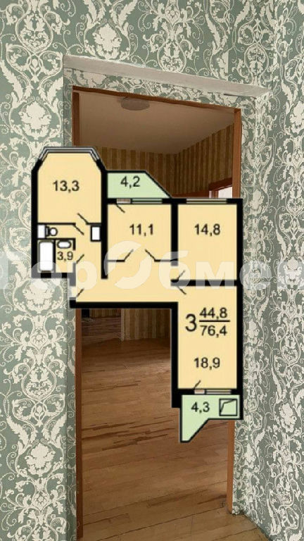 Комнаты: 11.1 14.8 18.9 м2