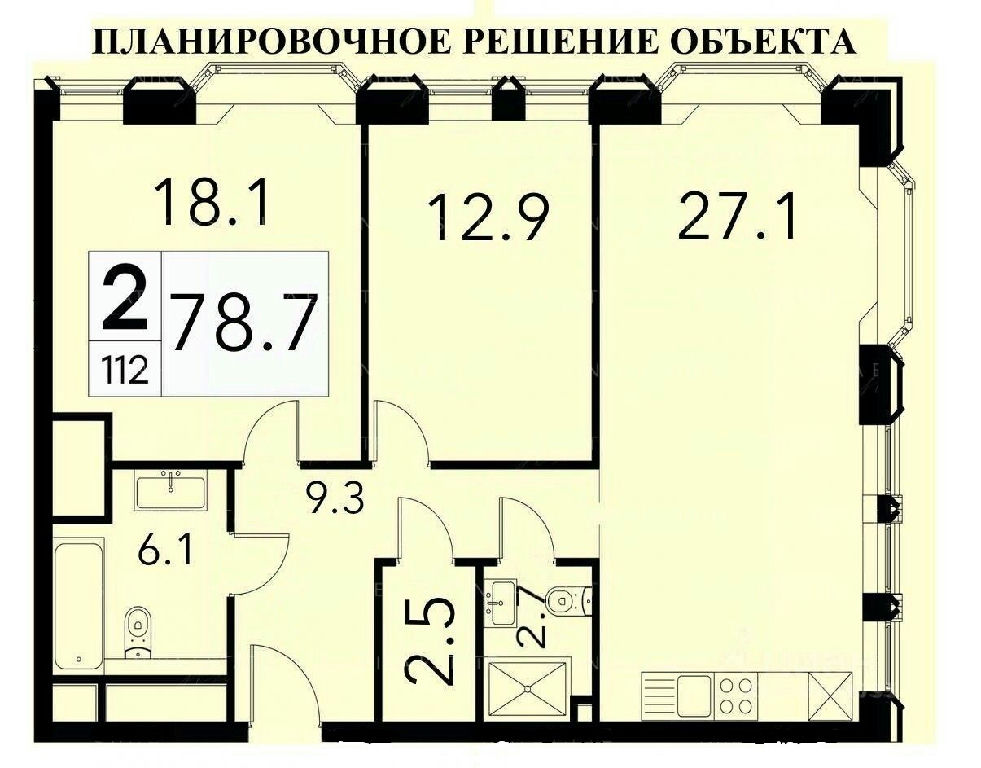 Общая: 78,7 м2