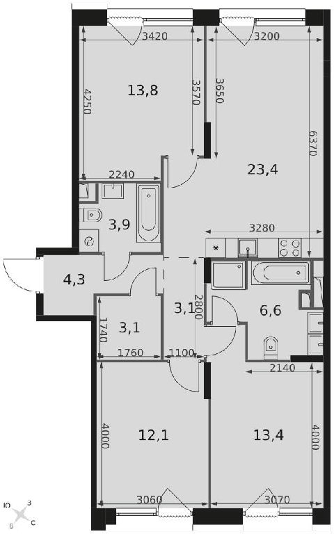 Квартира располагается на 10 этаже 17-этажного монолитного дома, высота потолков 3.17 м.