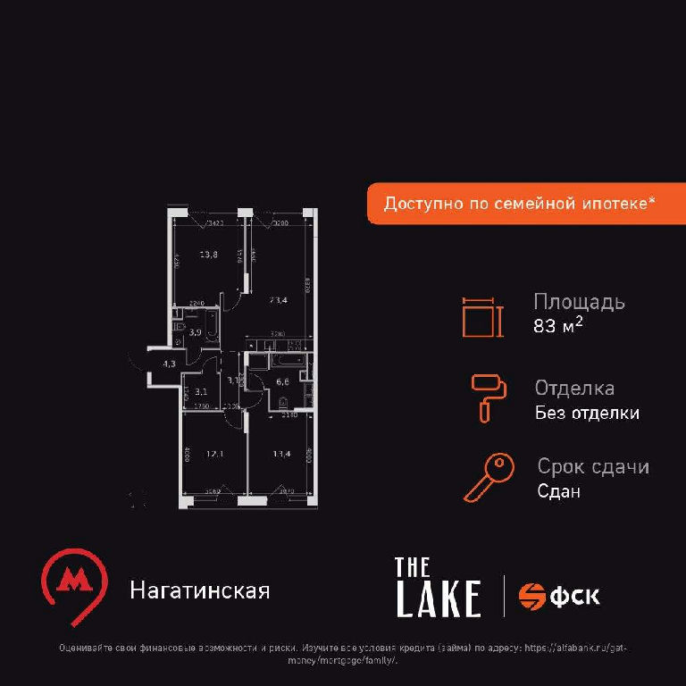 Общая: 83,7 м2