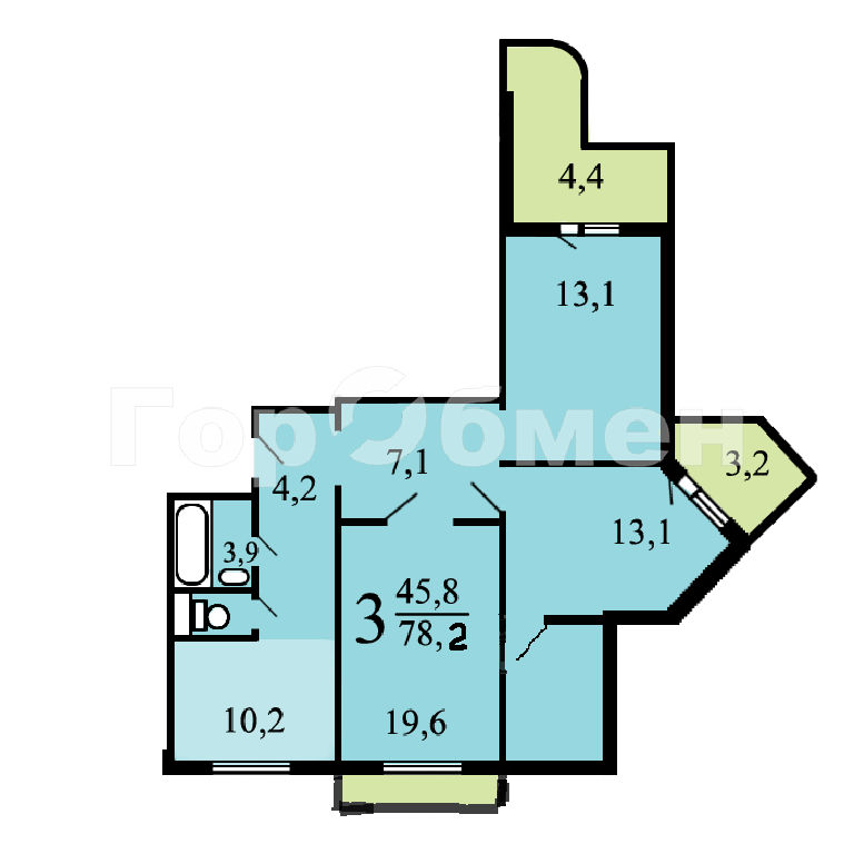 Комнаты: 13.1 13.1 19.6 м2