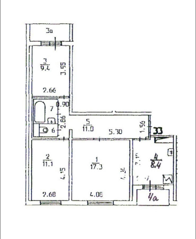 Комнаты: 17,3/11,1/9,4 м2