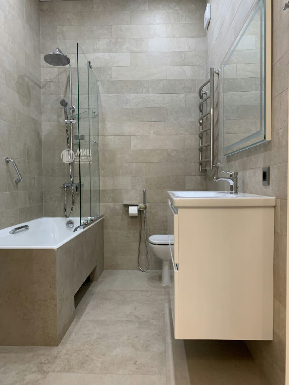 В квартире сделан современный качественный ремонт, полностью заменена электрика, сантехника, выровнены стены, полы, натяжной потолок. На полу испанский керамогранит с подогревом, дубовая инженерная термодоска. Кухня оборудована встроенной техникой, в спальне большой встроенный шкаф, в комнатах установлены воздухоочистители и кондиционеры.