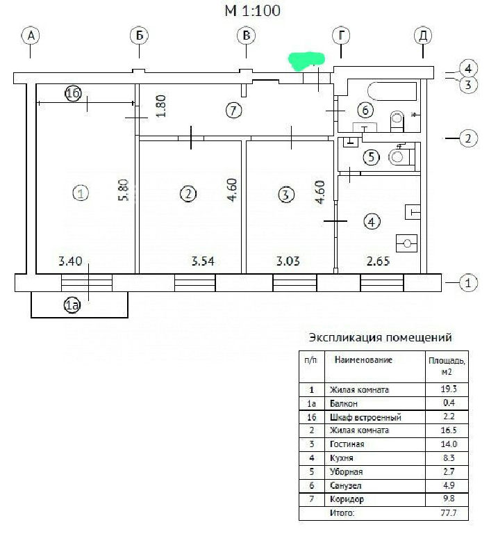 Общая: 77,8 м2