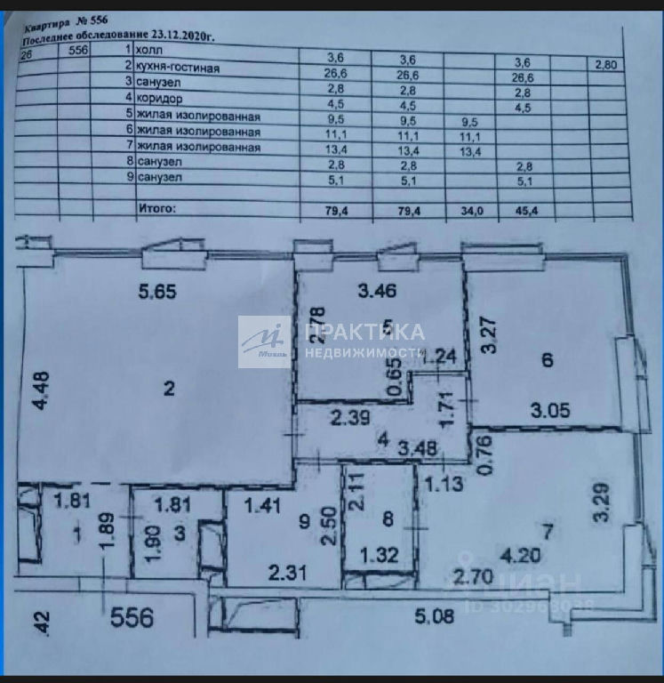 Общая: 79,4 м2