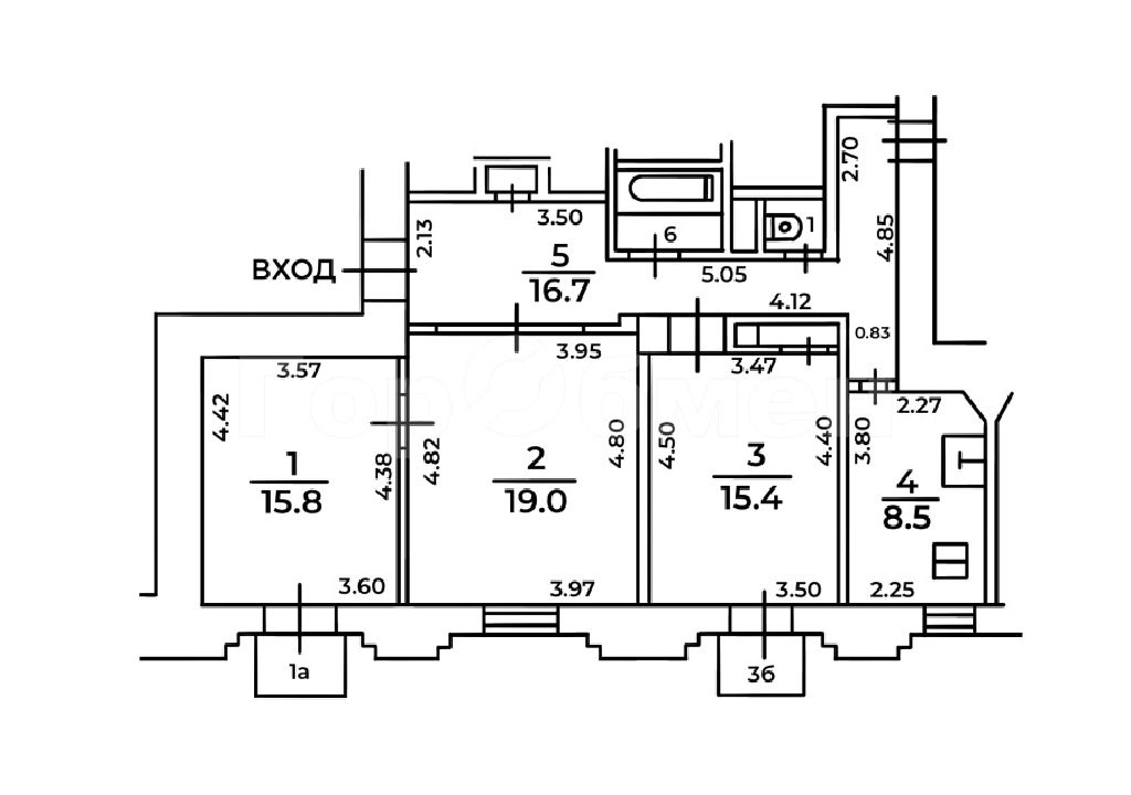 Комнаты: 19 15.8 15.4 м2